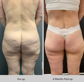 This patient lost 135lbs through diet and exercise. She underwent a full vertical thigh lift with contouring liposuction